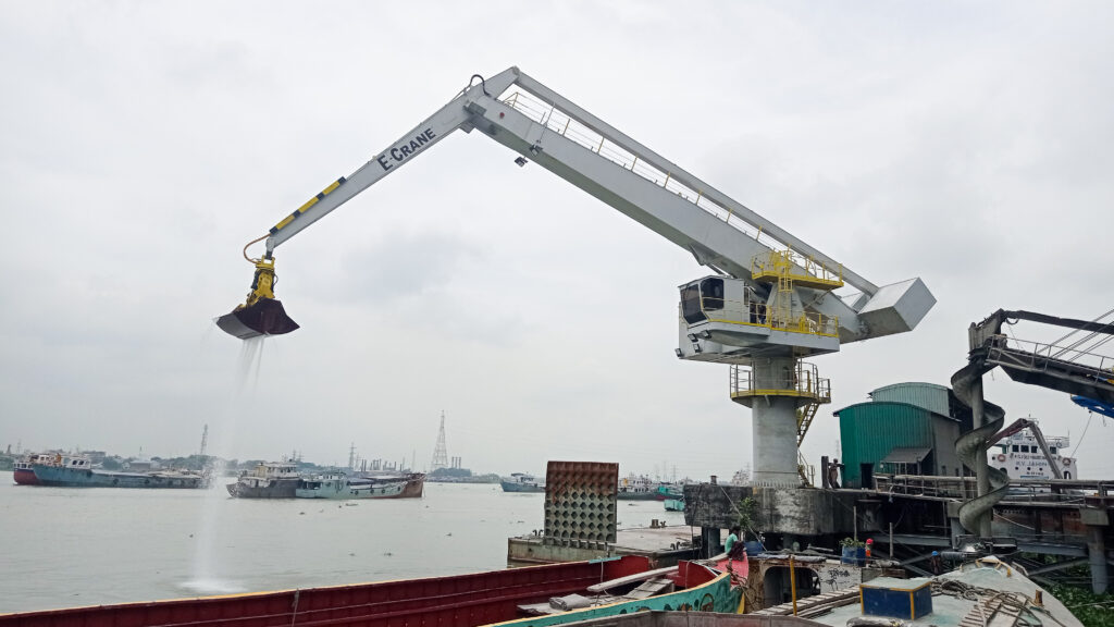 Belgium-based E-Crane has installed 5 new balance cranes at one of Bangladesh’s leading cement manufacturers, Crown Cement Plc, thus enhancing their raw material handling operations at their main plant. This advancement has streamlined the unloading of essential cement raw materials – such as clinker, slag, limestone, and gypsum – resulting in reduced unloading times and improved overall productivity.